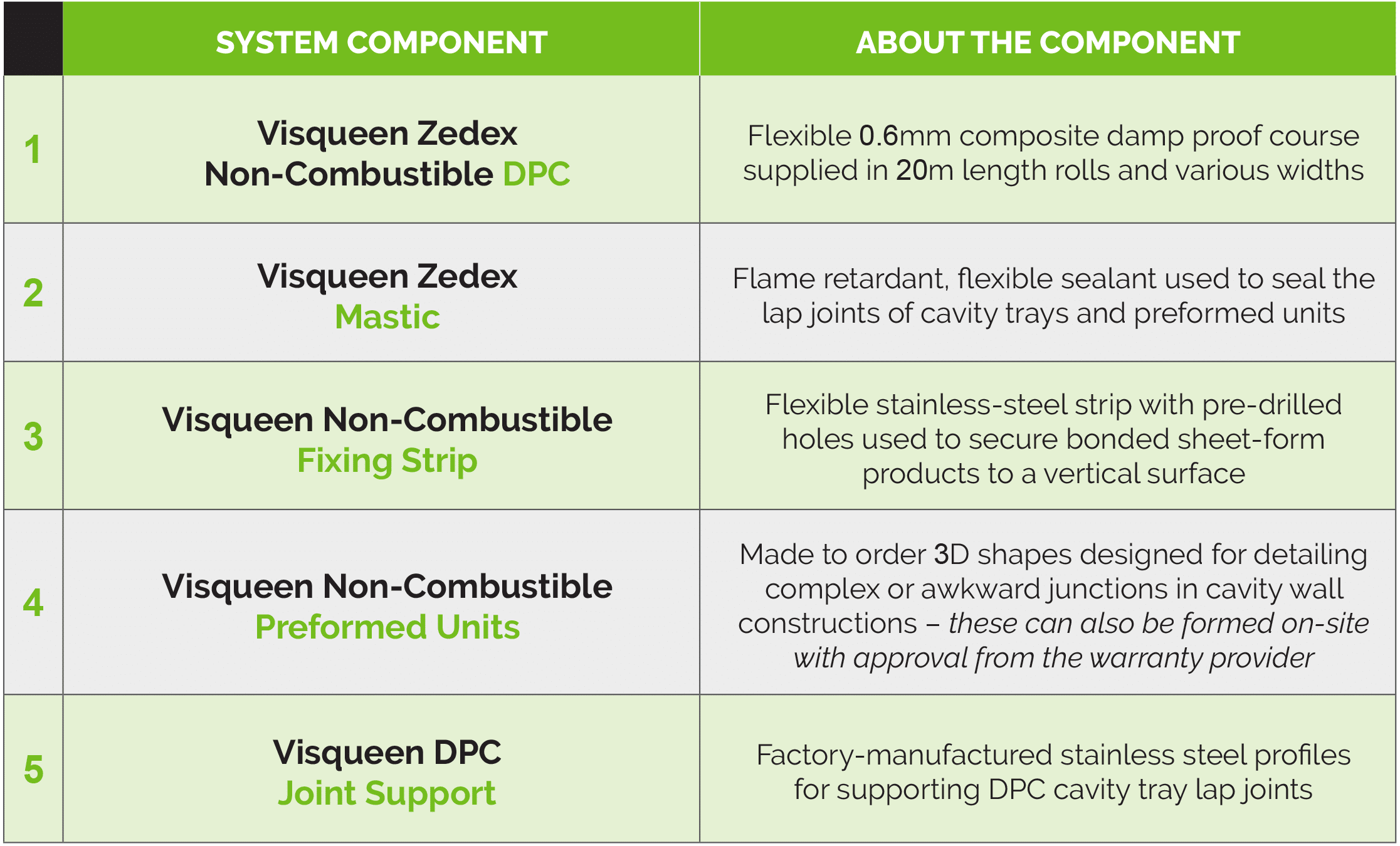 Whilst the innumerable benefits of the Visqueen Zedex Non-Combustible DPC are indisputable, many contractors remain unaware that this product must be used in conjunction with genuine Visqueen system components.