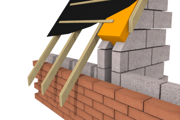 The T-Barrier Pitched Roof provides a fire, thermal and acoustic barrier between the party wall blockwork and underslaters felt along the roof pitch from soffit to apex. The unique T-shape is held in place by compression between the party wall blockwork leaves. It ensures an effective and consistent barrier that is easily installed once blockwork is complete.